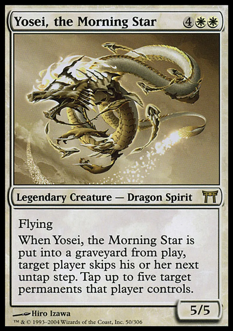 | Oracle Text | Flying When Yosei, the Morning Star dies, target player skips his or her next untap step. Tap up to five target permanents that player controls. | ||
