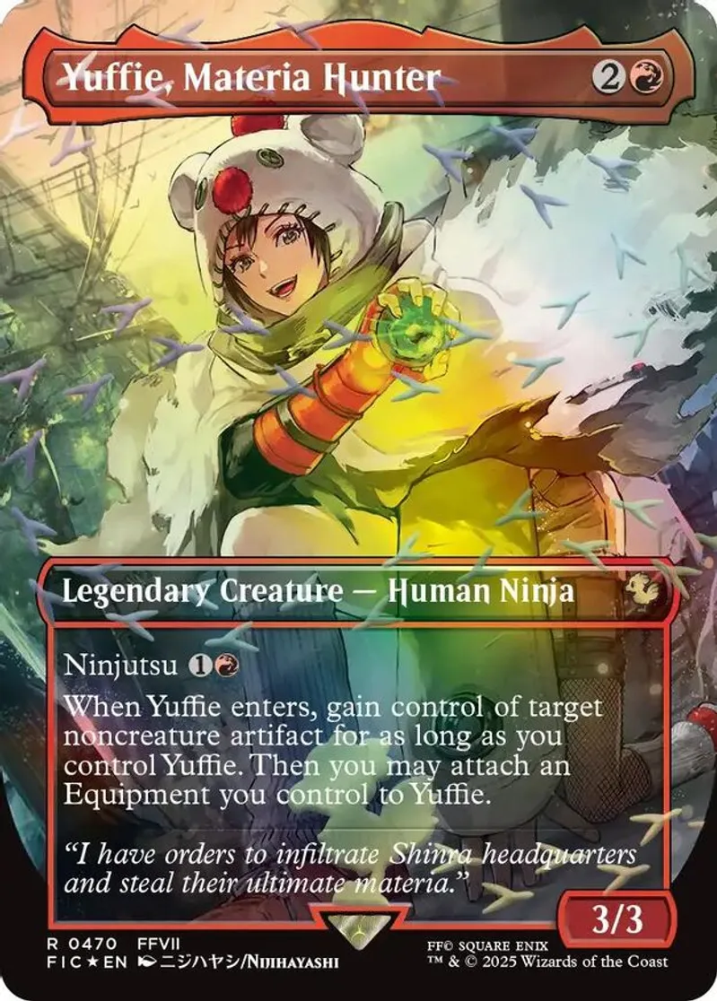 Yuffie, Materia Hunter (Borderless) (Chocobo Track Foil) is a Rare in the set Commander: FINAL FANTASY.