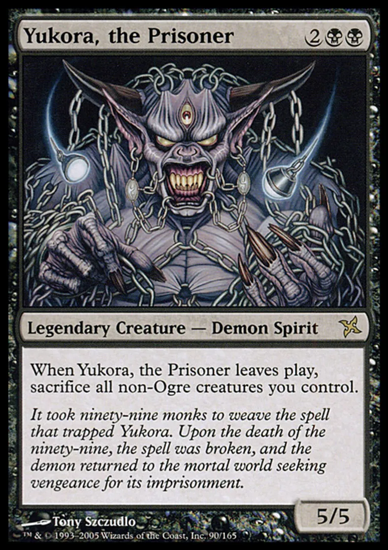 | Oracle Text | When Yukora, the Prisoner leaves the battlefield, sacrifice all non-Ogre creatures you control. | ||
