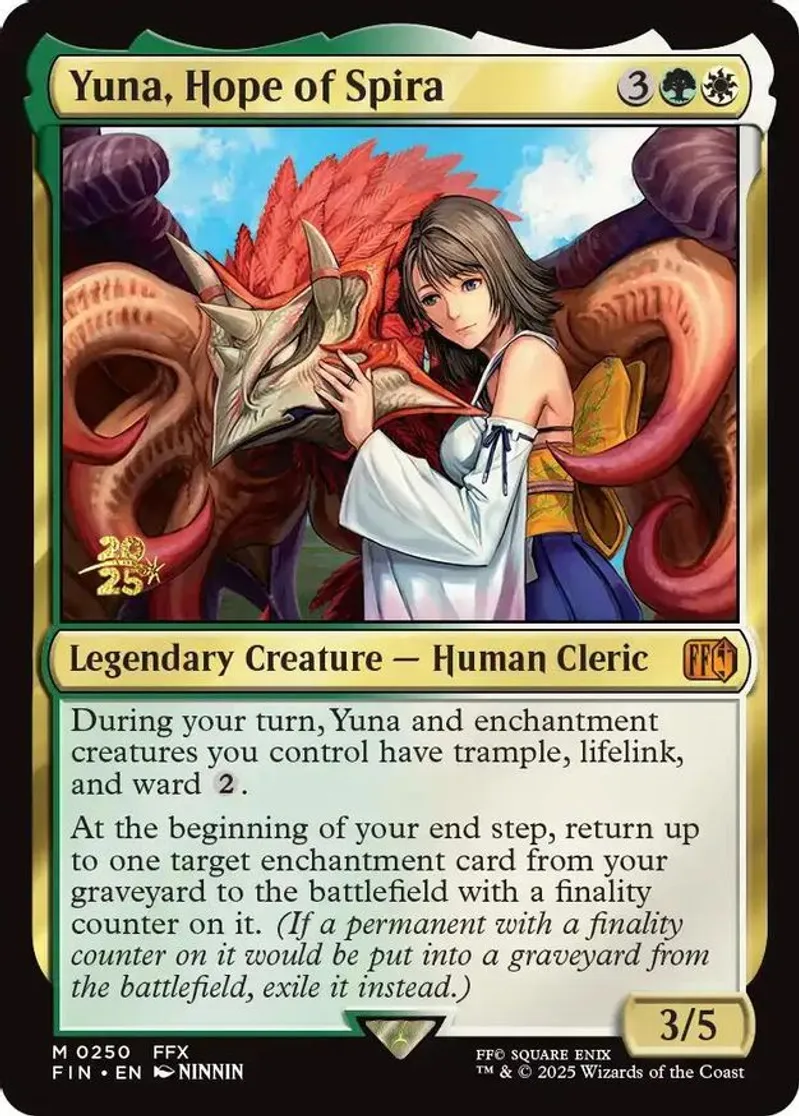 | Oracle Text | during your turn, yuna and enchantment creatures you control have trample, lifelink, and ward 2.