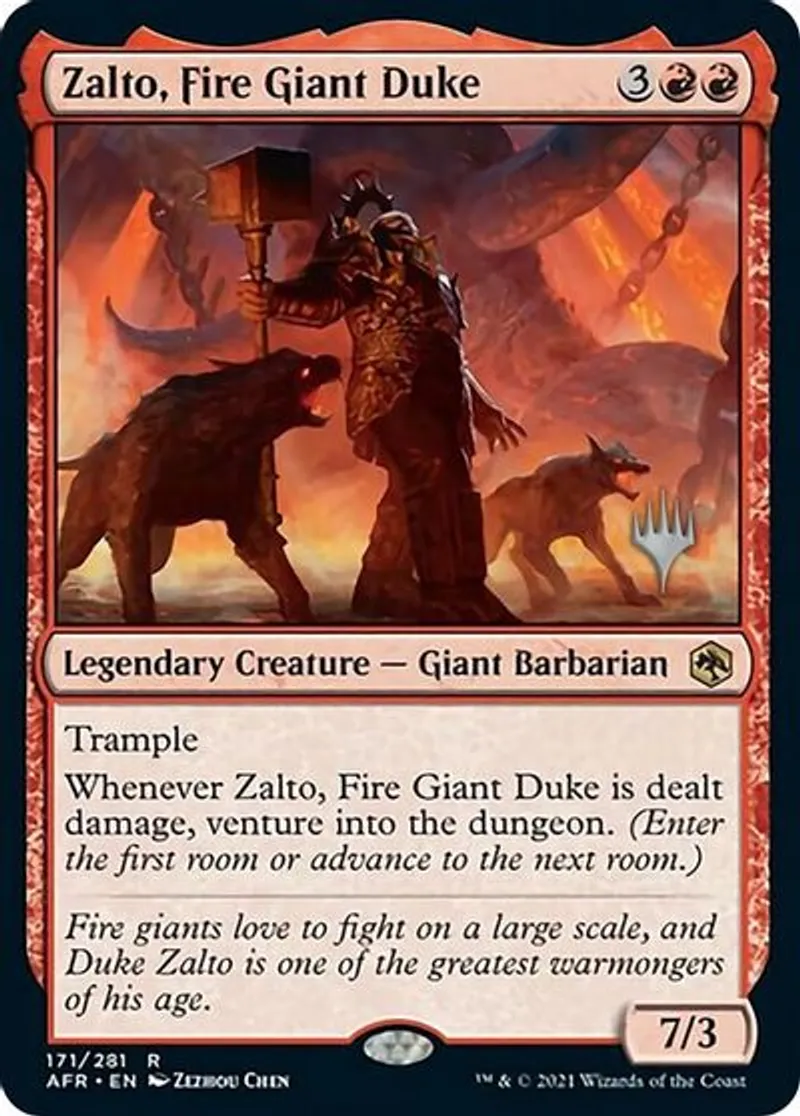 Magic: the Gathering (mtg) Rare Legendary Creature - Giant Barbarian Zalto, Fire Giant Duke from Promo Pack: Adventures in the Forgotten Realms (pAFR) last updated 2026-02-25 15:33:33