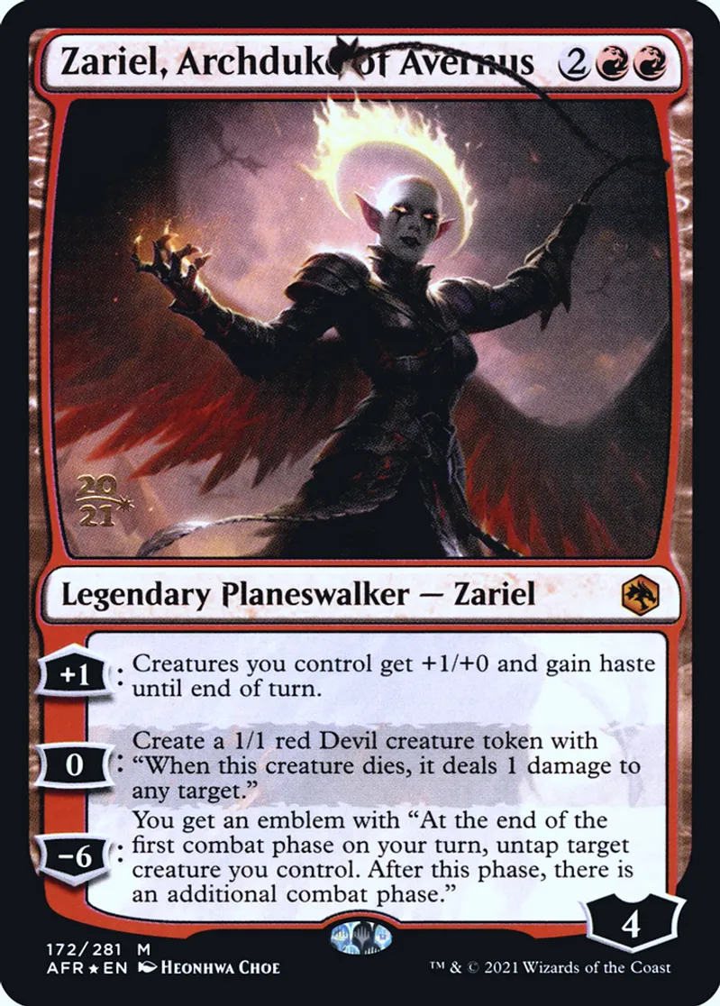 Magic: the Gathering (mtg) Mythic Rare Legendary Planeswalker — Zariel Zariel, Archduke of Avernus from Prerelease Cards (pPRE) last updated 2026-02-24 15:34:32