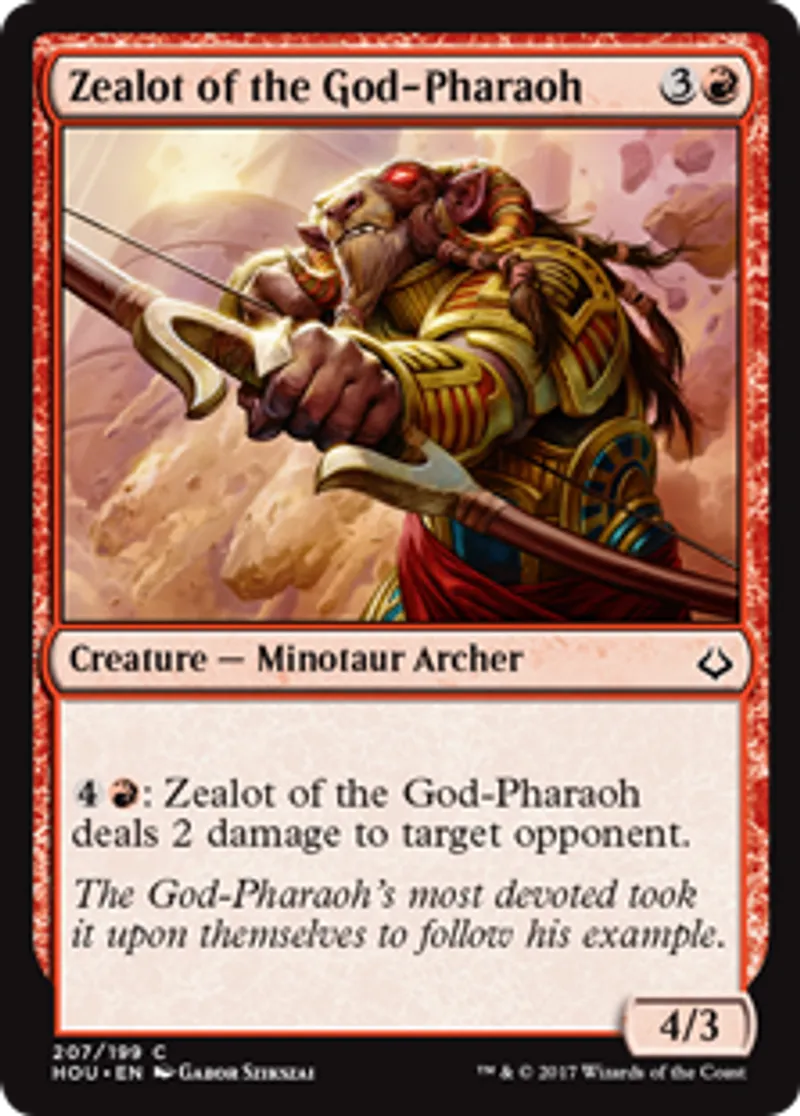 | Oracle Text | {{4}}{{r}}: Zealot of the God-Pharaoh deals 2 damage to target opponent. | ||