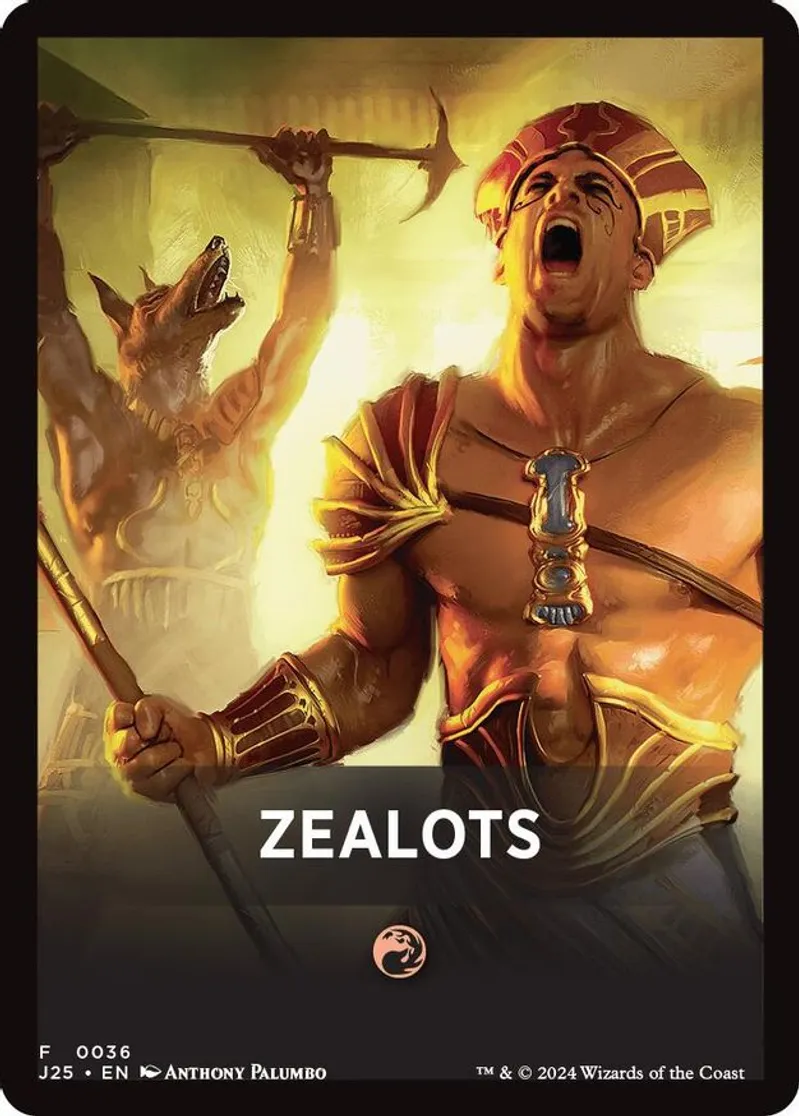 Magic: the Gathering (mtg) Token theme token card Zealots Theme Card from Foundations Jumpstart (J25) last updated 2026-02-21 15:34:32