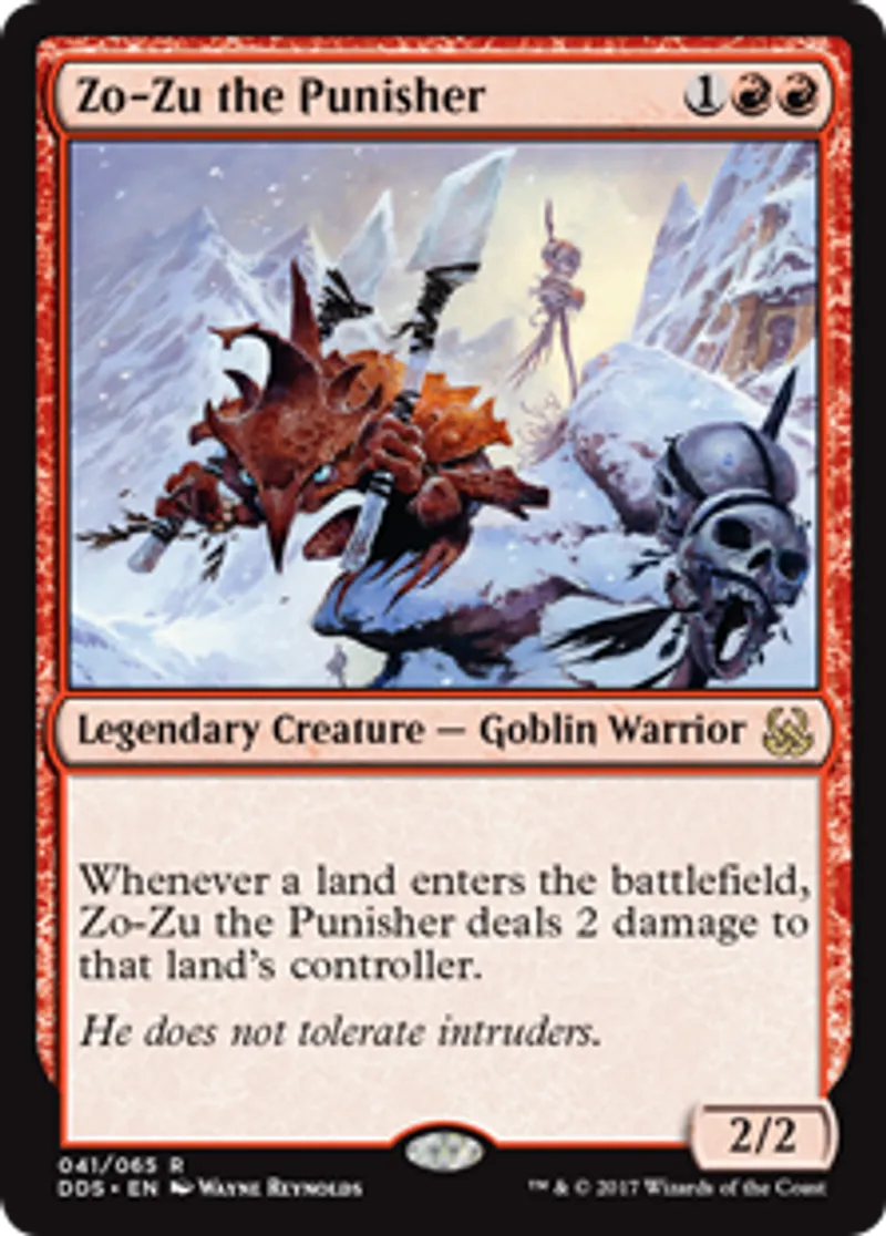 | Oracle Text | Whenever a land enters the battlefield, Zo-Zu the Punisher deals 2 damage to that land's controller. | ||