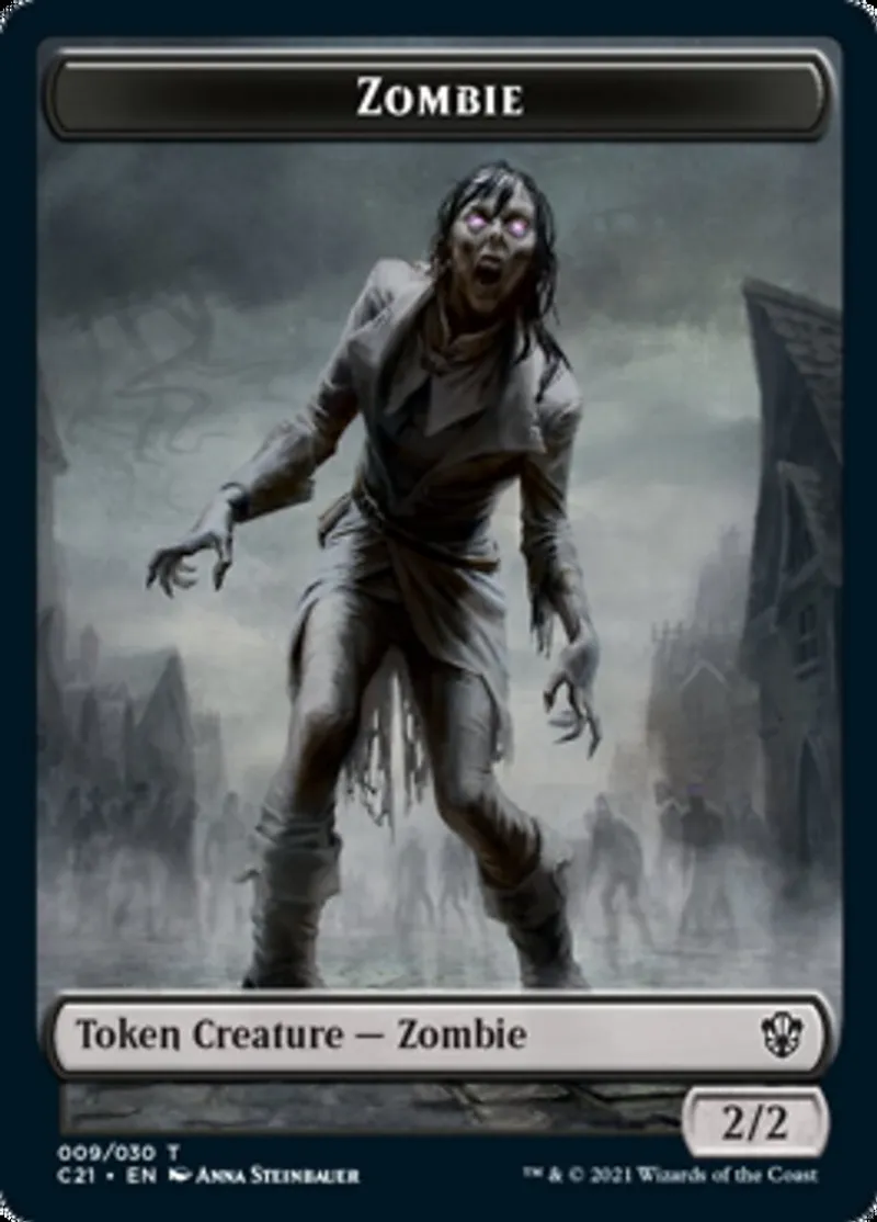 Magic: the Gathering (mtg) Token Token Creature - Zombie Zombie // Horror Double-sided Token from Commander 2021 Tokens (TC21) last updated 2026-02-21 16:36:36