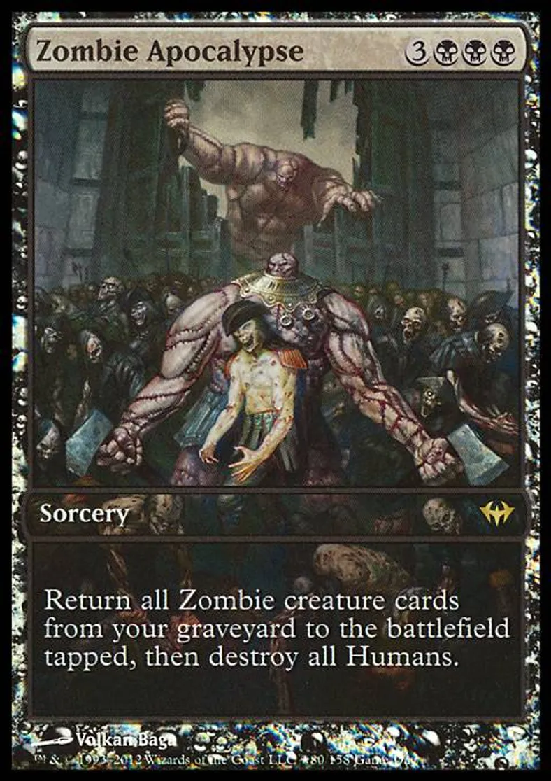 | Oracle Text | Return all Zombie creature cards from your graveyard to the battlefield tapped, then destroy all Humans. | ||