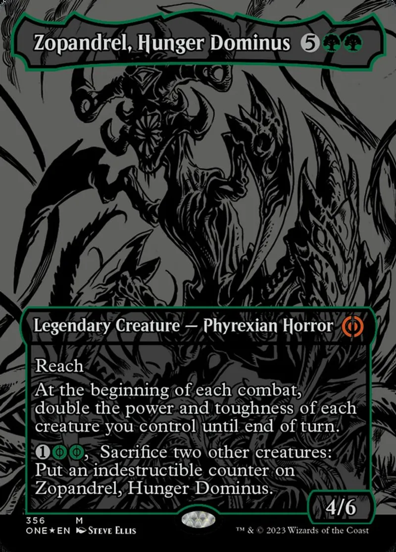 Magic: the Gathering (mtg) Mythic Rare Legendary Creature — Phyrexian Horror Zopandrel, Hunger Dominus from Phyrexia: All Will Be One (one) last updated 2026-02-24 15:41:32